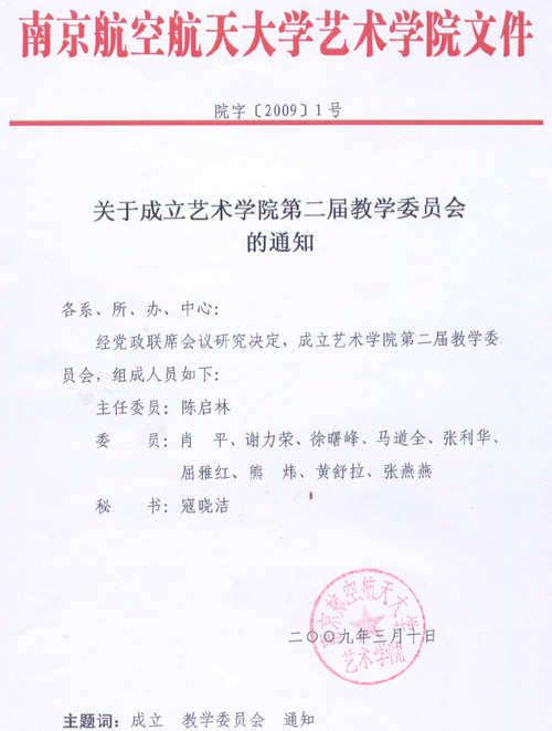 关于成立黄色影片 第二届教学委员会的通知