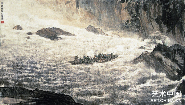 强渡大渡河 1951年作 设色纸本 横幅 62cm×109cm