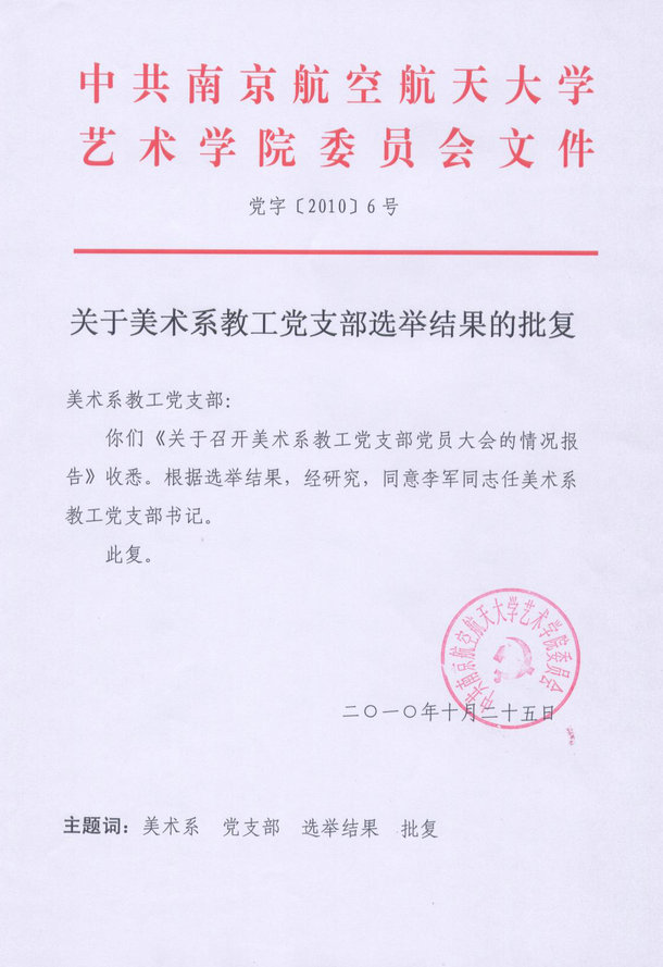 关于美术系教工党支部选举结果的批复