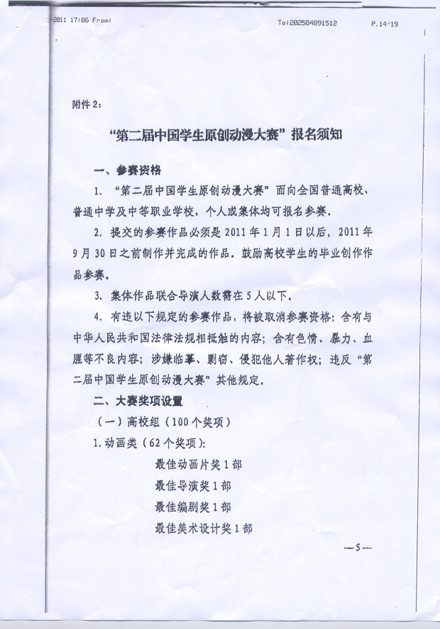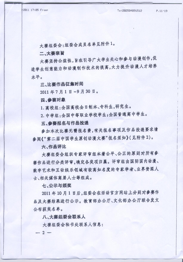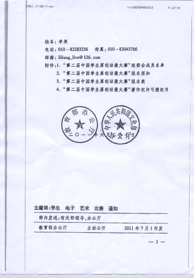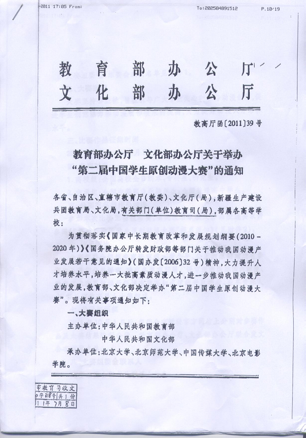 教育部办公厅 文化部办公厅关于举办“第二届中国学生原创动漫大赛”的通知”