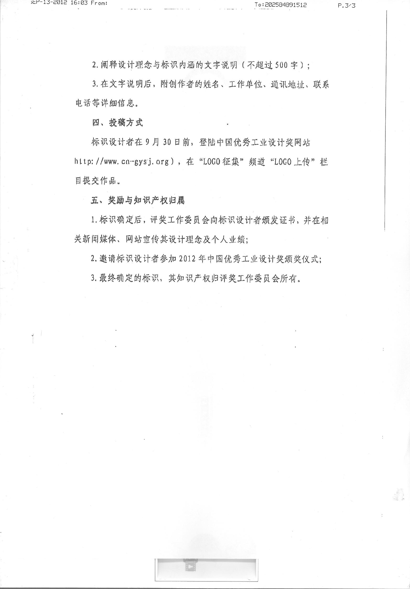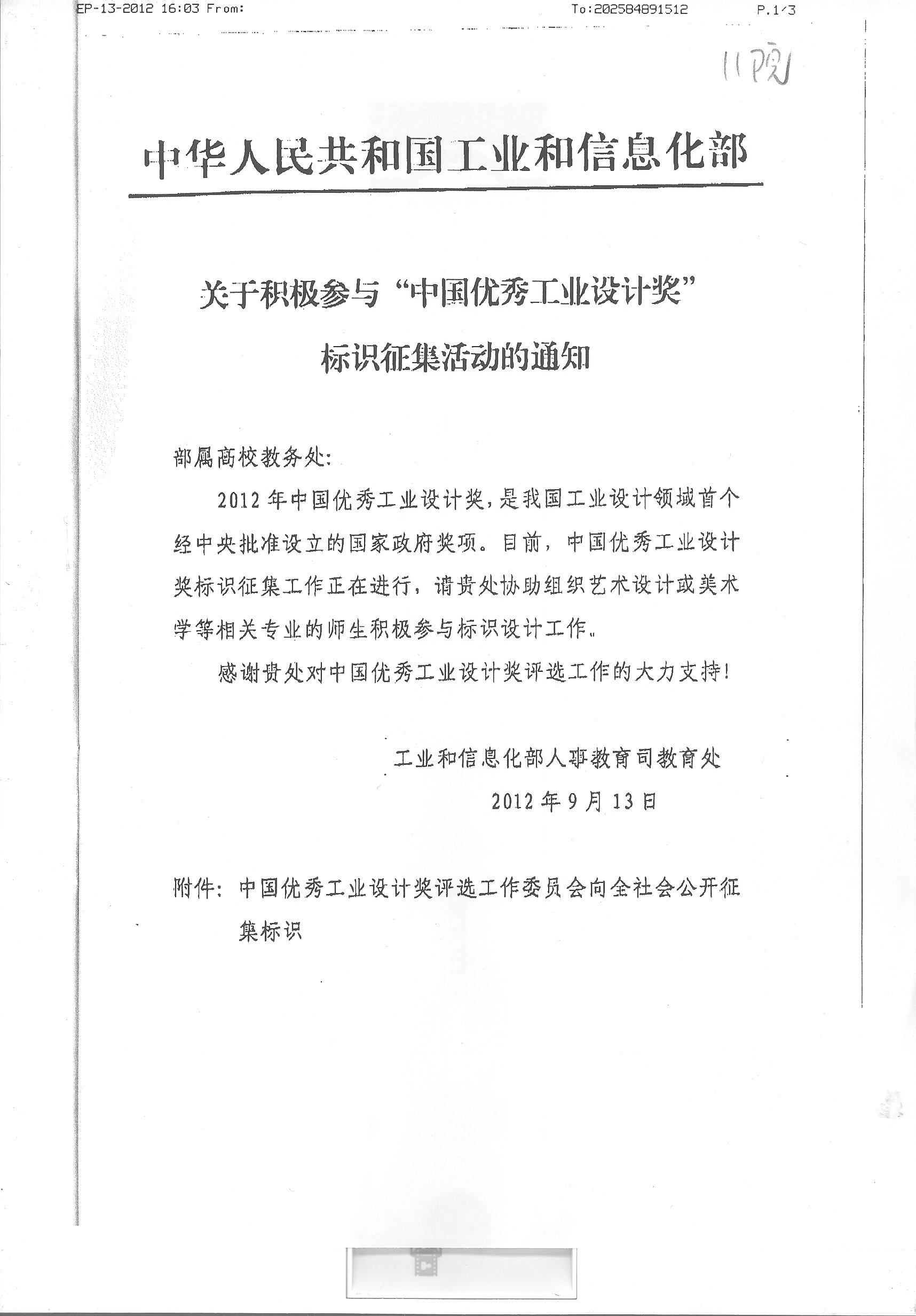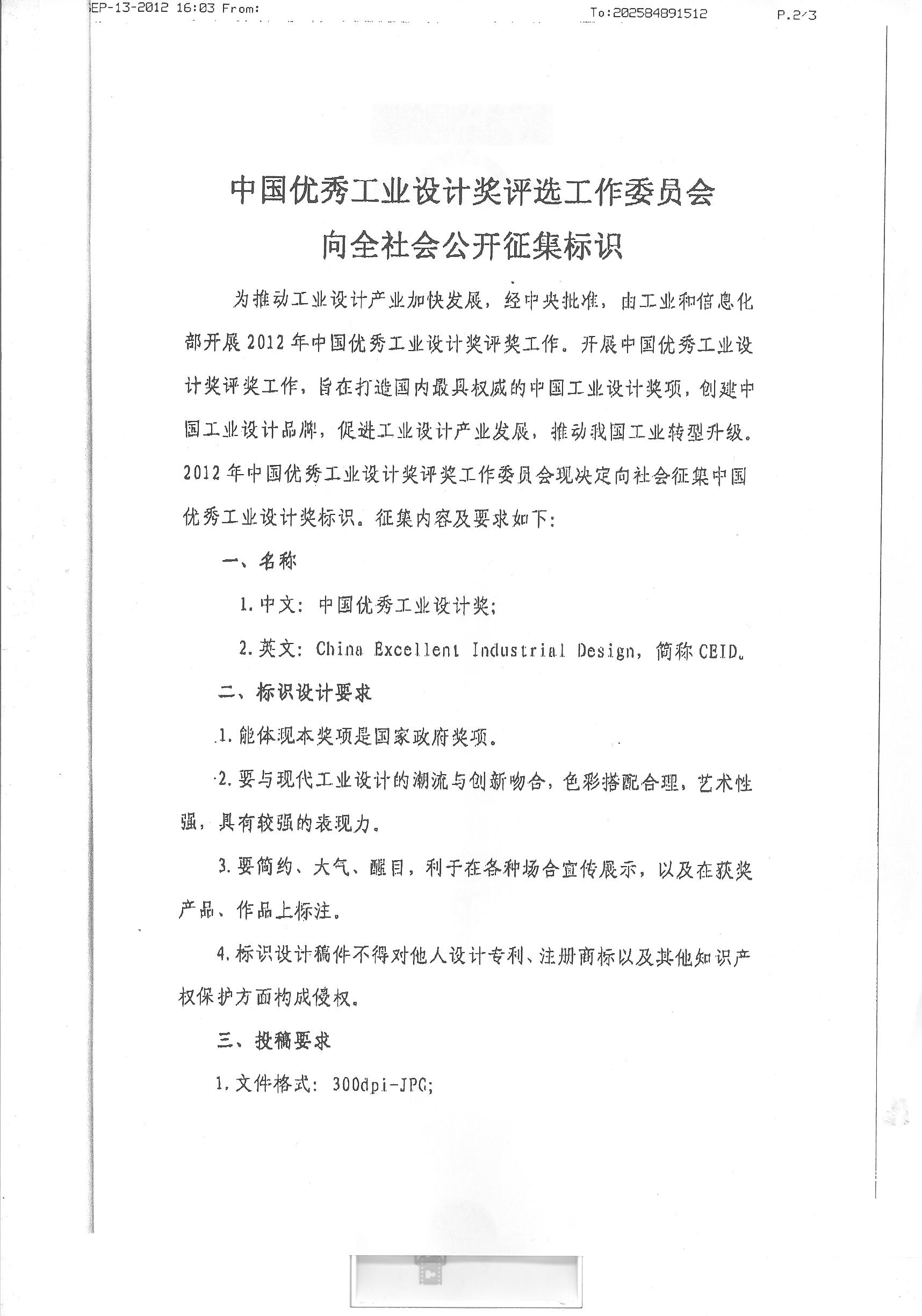 关于“中国优秀工业设计奖征集标识”的通知