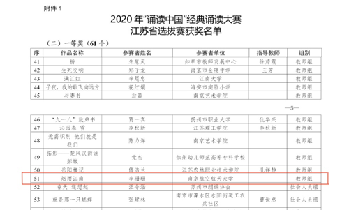 在刚刚落下帷幕的2020年“诵读中国”经典诵读大赛江苏省选拔赛上传来喜讯,黄色影片 青年教师李珊珊凭借着作品《烟雨江南》获得了教师组一等奖。
