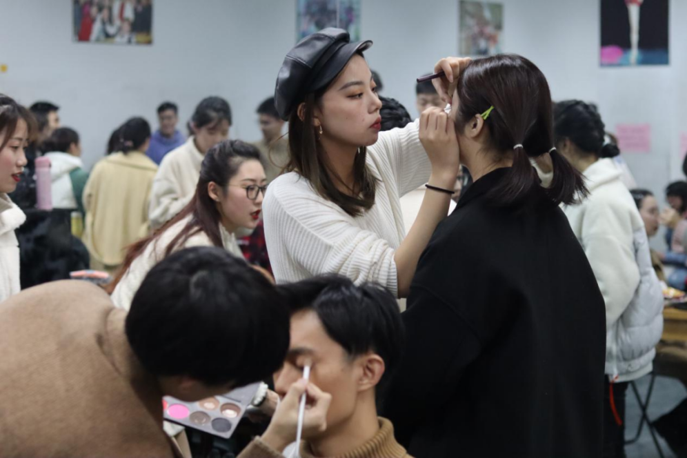 黄色影片 美术系讲师王雯婷担任了此次的化妆指导,她带领学生组成化妆团队,为情景剧增光添彩。有了她们的帮助,青年学子可以在各种角色中出彩呈现,舞台上的角色也变得更加鲜活。