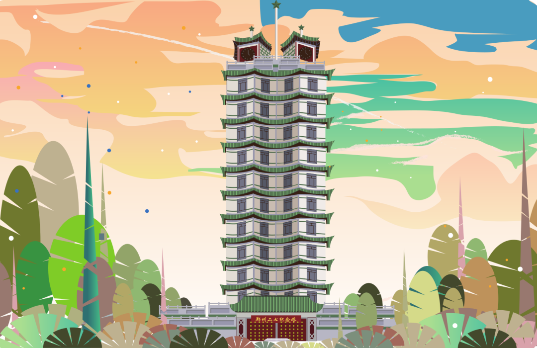 设计学学生党支部遴选出西柏坡纪念馆、二七纪念塔、华东革命纪念塔、雨花台烈士纪念馆、白色起义纪念馆五幅纪念馆图纸,结合地区标志性的环境建筑物,将红色元素与现代化设计相结合,利用专业素养和审美眼光进行再设计,凸显革命者与建设者英勇无畏的红色精神。