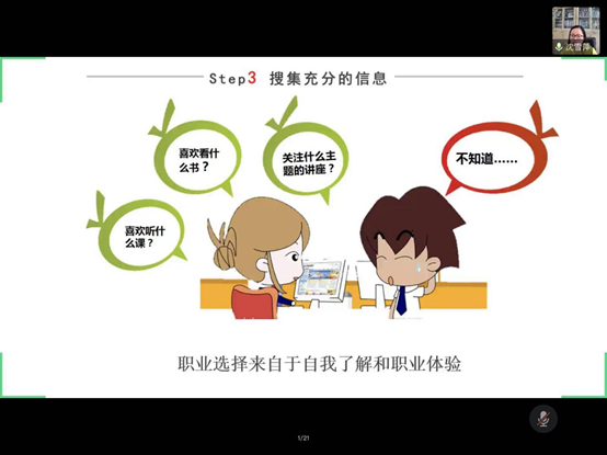 2020年6月11日,黄色影片 开展了职业素质训练营第四讲——大学生如何进行职业选择,会议由辅导员李爽主持,学院邀请了我校大学生就业创业指导服务中心的沈雪萍老师,为学院学生职业选择进行了专业的指导和建议。