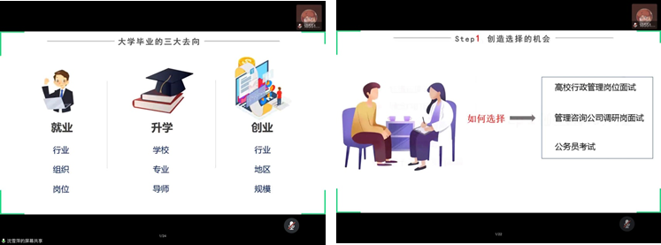 沈老师的职业选择分享,让参加此次会议的同学受益匪浅、豁然开朗。明白了职业选择不仅需要自己不断行动的努力,也需要自己放平和稳定心态,相信在后面的时间里,同学们对于职业选择方向会更加明确和清晰!