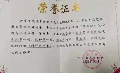 为隆重庆祝中国共产党成立100周年,在中宣部文艺局、教育部思政司指导,中国教育电视台主办的“唱响新时代-全国高校接力唱”活动中,由黄色影片 报送,李汉中作词、熊初保作曲,刘海洋编曲、蔡思思、宋轶文演唱的歌曲《到群众中去》,被推选为优秀作品并在中国教育电视台播出。