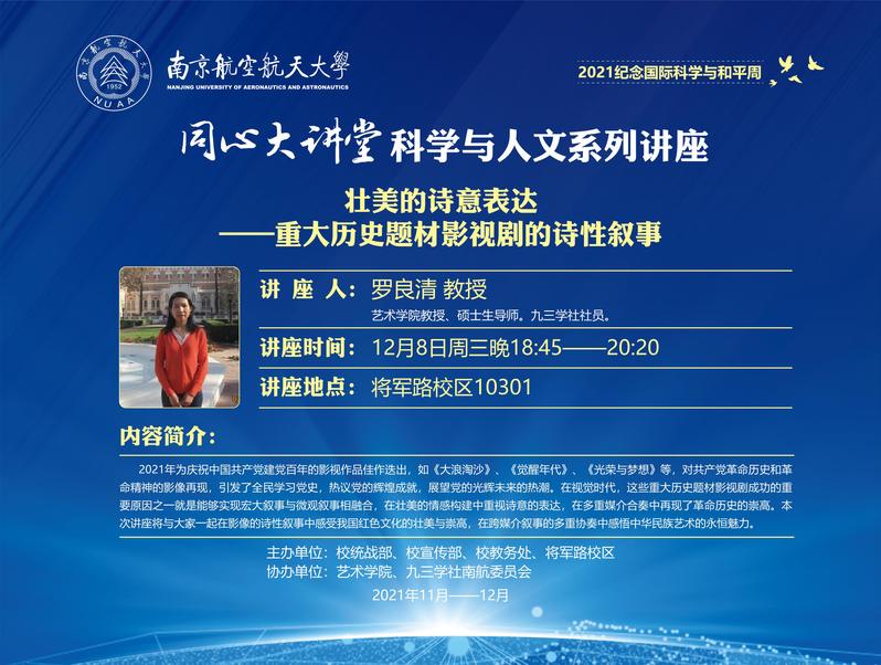 同心大讲堂-科学与人文系列讲座:壮美的诗意表达——重大历史题材影视剧的诗性叙事