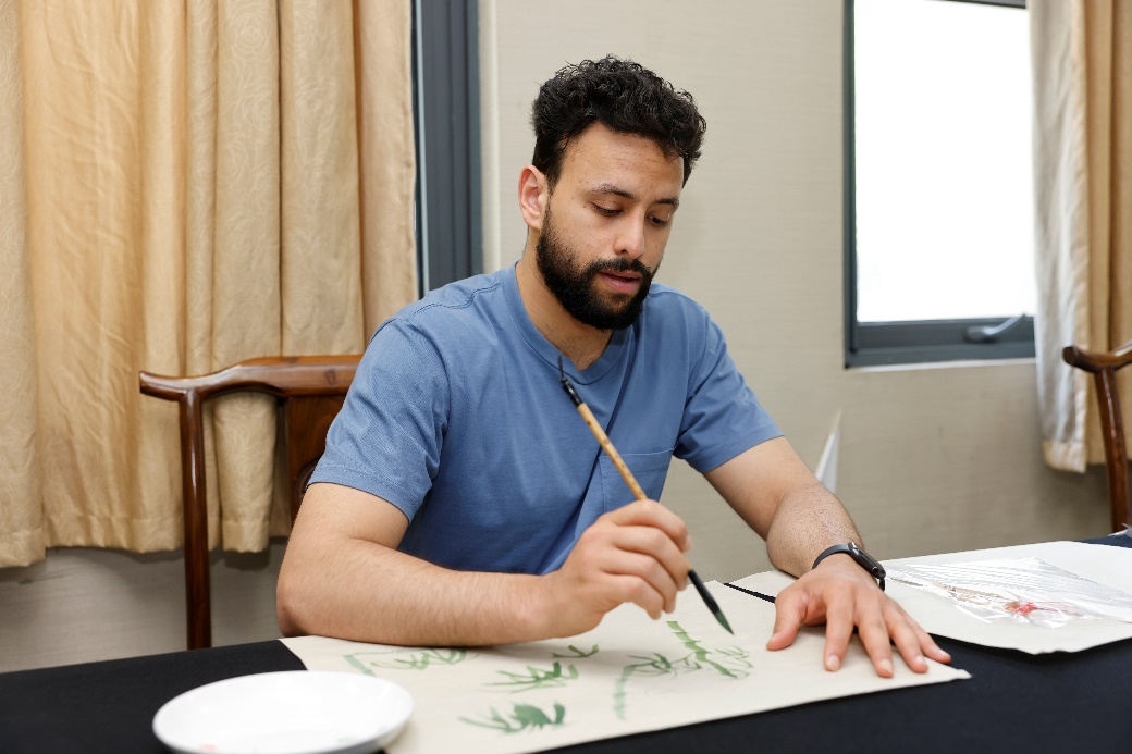 “我是来自也门的Ahmed Alkhanbashi,我非常喜欢今天的中国传统绘画课。这种体验令我感到难以置信地放松和难忘,让我能够挖掘我的创造力,并通过笔触表达自己。了解中国传统绘画的历史和技巧,使我对中国艺术的魅力有了更深的体会。整堂课沉浸在一种平静美好的氛围中,让我能够探索另一种形式的艺术并尝试新的东西。总的来说,这对我来说是一个很好的机会,可以扩大我的视野,沉迷于美妙的艺术体验。”