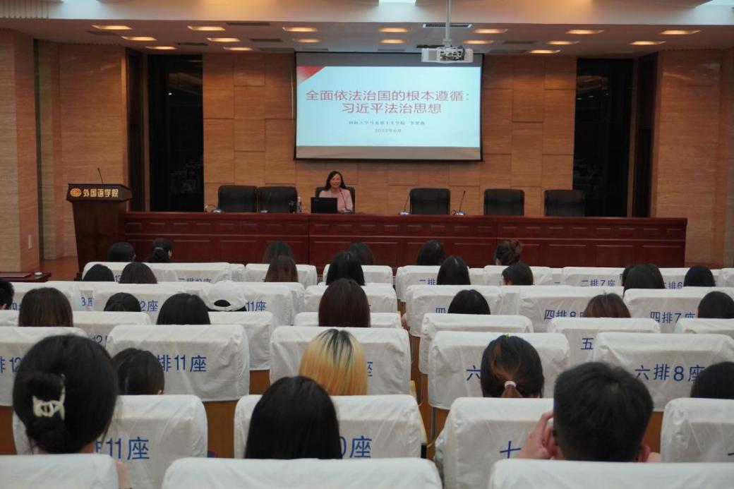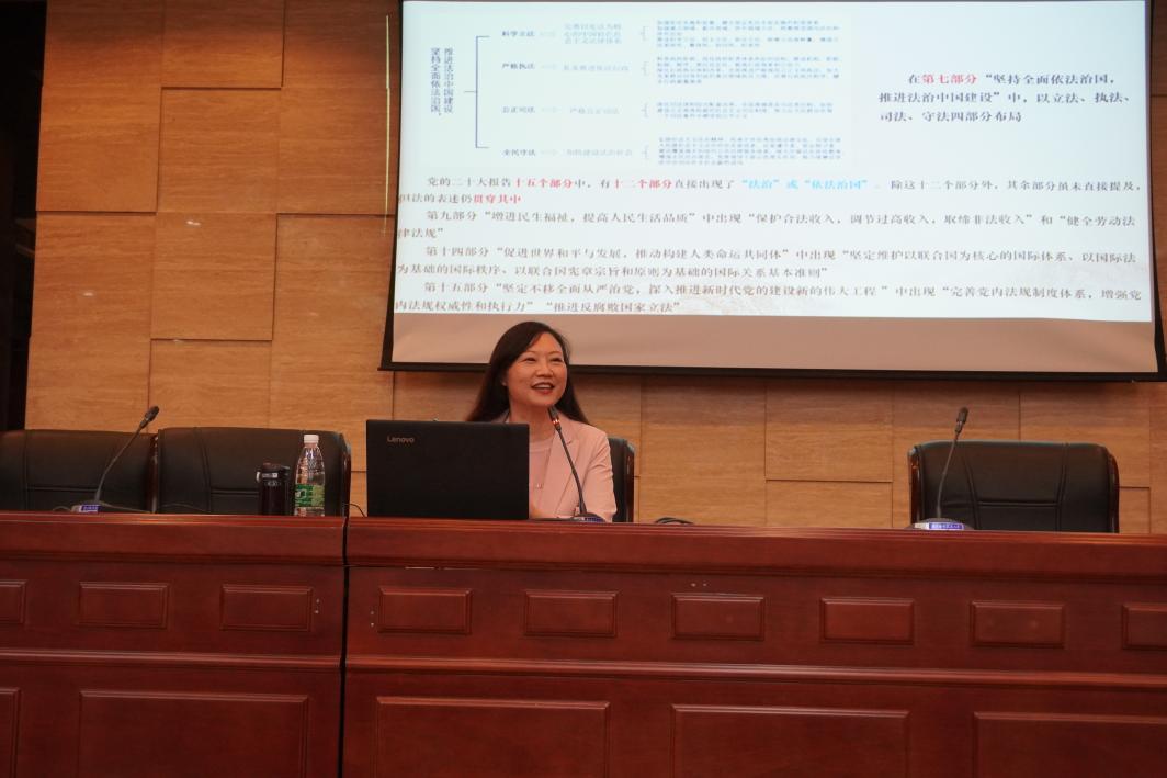 李栗燕教授以“全面依法治国的根本遵循:习近平法治思想”为题,详细阐释了党的二十大报告中的法治表述,论述了习近平法治思想的核心要义以及具体内容,让师生对于习近平法治思想有了清晰的认识和理解。通过此次辅导报告会,师生们认识到,法治是国家强盛的重要保障和标志,一个现代化国家必然是法治国家。坚定了深入学习贯彻习近平法治思想,在法治轨道上全面建设社会主义现代化国家的信念。