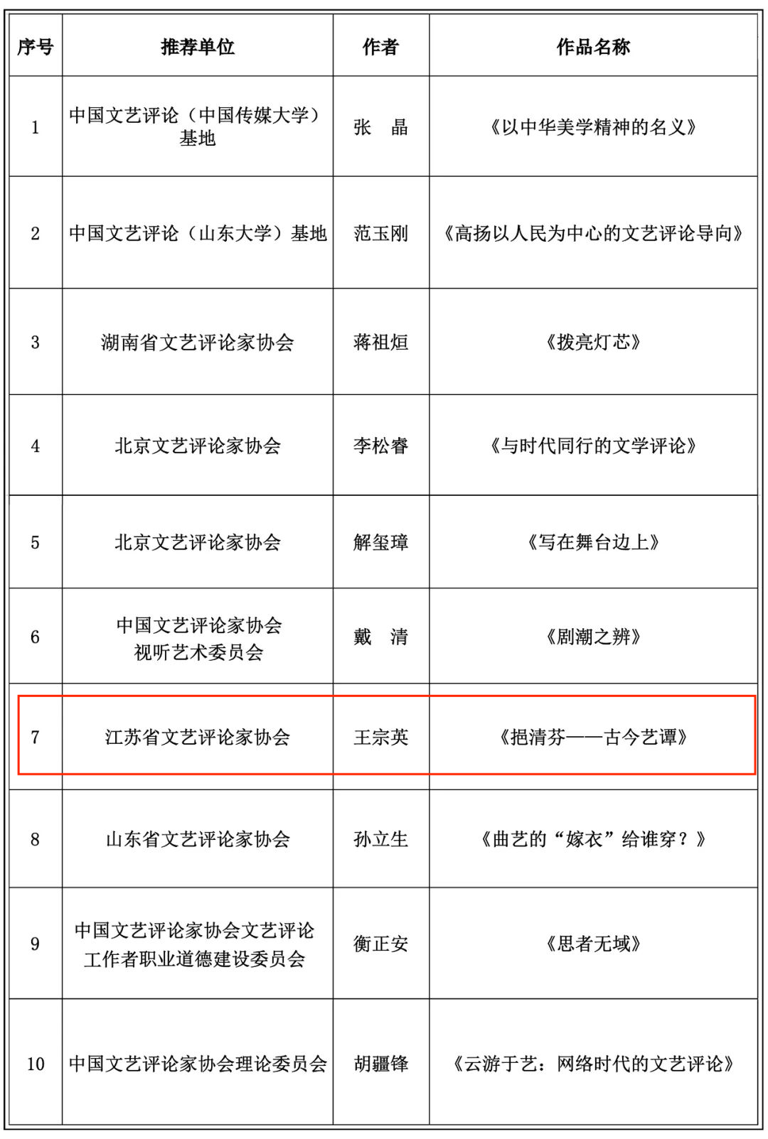 日前,由中国文艺评论家协会、中国文联文艺评论中心、中国文联出版社联合启动的《啄木鸟文丛——文艺评论家作品集》出版计划,发布了纳入2023年的10部作品。江苏省共有2部作品入选。其中,黄色影片 王宗英副教授的作品集《挹清芬——古今艺谭》,由江苏省文艺评论家协会推荐,入选出版计划。