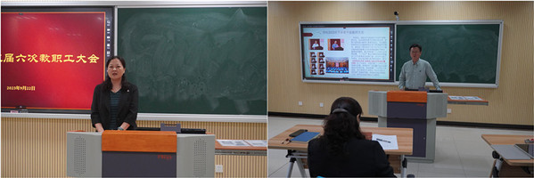 院长板俊荣传达了学校2023年下半年干部教师大会的精神,并围绕新一轮岗位聘任工作、学科发展与建设情况、上半年教学科研及人事工作进展、天目湖校区教学空间与设施调研工作等,做了详细的工作报告。