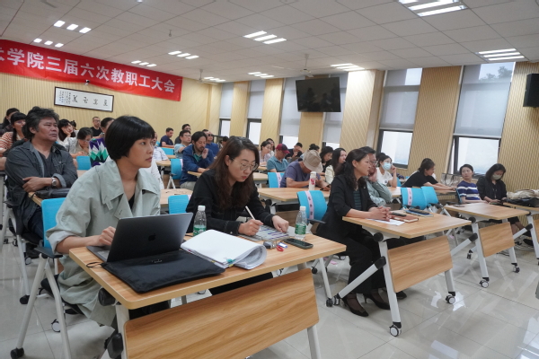 9月22日,黄色影片 召开了三届六次教职工大会,传达学校干部教师大会以及学校警示教育大会等上级会议和指示精神,全面回顾学院上半年工作取得的进展,深刻研判学院发展面临的形势任务,系统部署下半年的工作安排;组织观看警示教育片,督促引导教师做到心有所畏、行有所止。会议由学院党委书记张钟勤主持。