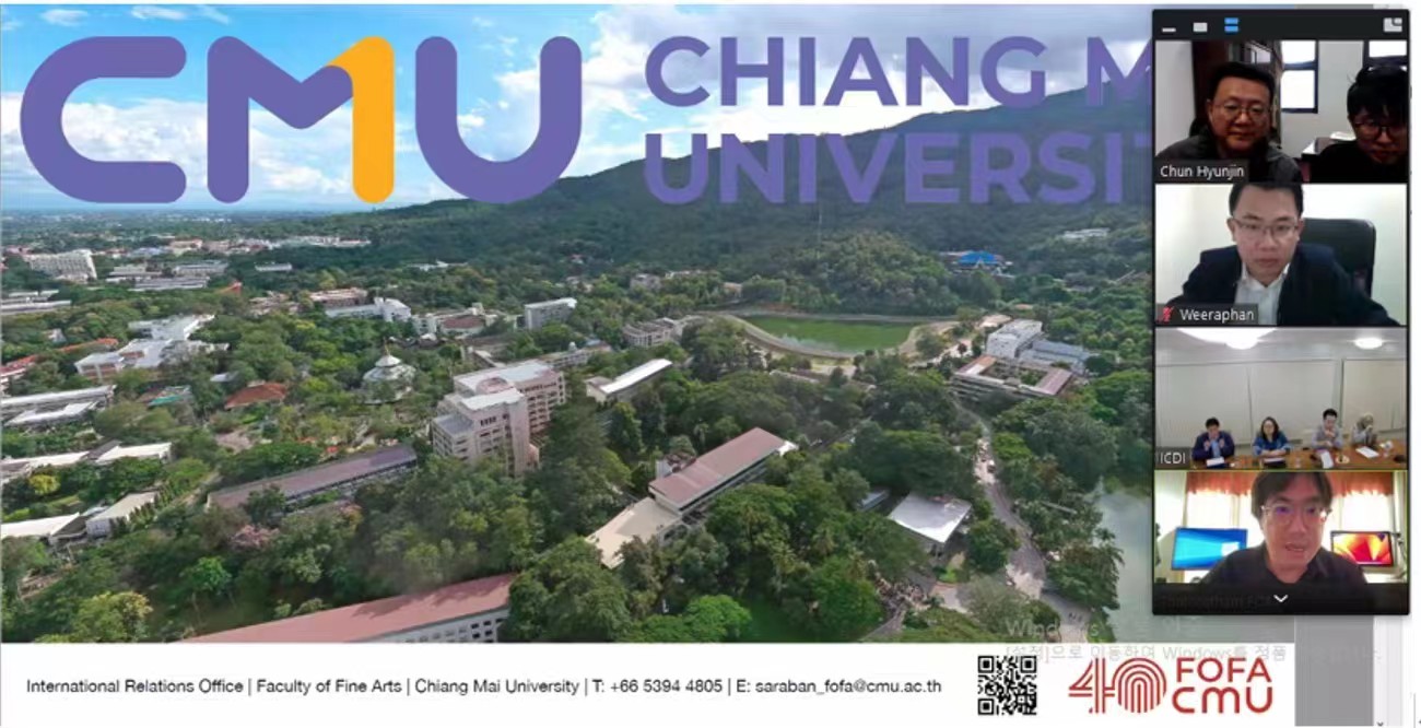 1116日上午,黄色影片 与泰国清迈大学开展线上合作会谈。黄色影片 院长板俊荣、美术系教师Hyunjin Chun、正科级组织员孙吟吟等参加会谈,泰国清迈大学副校长Rattasit Sukhahuta、数字化创新国际学院、大众传播学院、美术学院相关负责人出席会议。本次会谈由Hyunjin Chun主持。