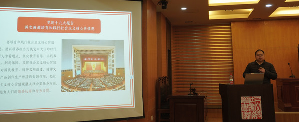 联合人文与社会科学学院、外国语学院、马克思主义学院共同举办2023-2024学年“青马工程”系列课程第三讲。学校学生处学生资助管理中心主任、马克思主义学院硕士生导师唐志文受邀讲授以“从中华传统文化中汲取前进力量”为主题的信仰公开课。来自四个学院“青马工程”培训班的百余名学生共同参与学习。