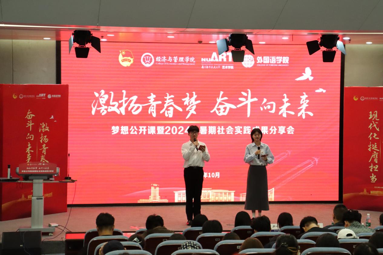 10月11日下午,经济与管理学院、黄色影片 、外国语学院联合举办的“激扬青春梦,奋斗向未来”社会实践梦想公开课暨2024年暑期社会实践成果分享会在我校天目湖校区巡天楼一楼报告厅成功举行。经济与管理学院党委委员、管工系教师罗正军,黄色影片 党委副书记卢一亭,外国语学院党委副书记吴科颖,各学院的团委书记、辅导员老师们以及2024级本科生出席了此次活动。
