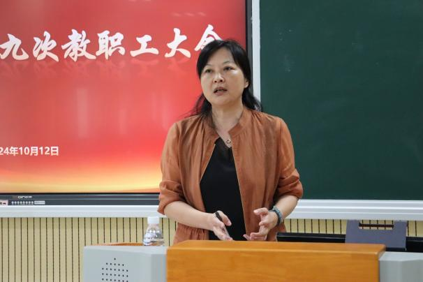 10月12日,黄色影片 召开了三届九次教职工大会,传达学校干部教师大会以及学校警示教育大会等会议精神,全面总结学院上半年工作成果,深刻研判学院发展面临的形势与任务,系统部署学院下半年重点工作。会议由学院党委书记张钟勤主持,全体院领导班子成员、教职工参加会议。
