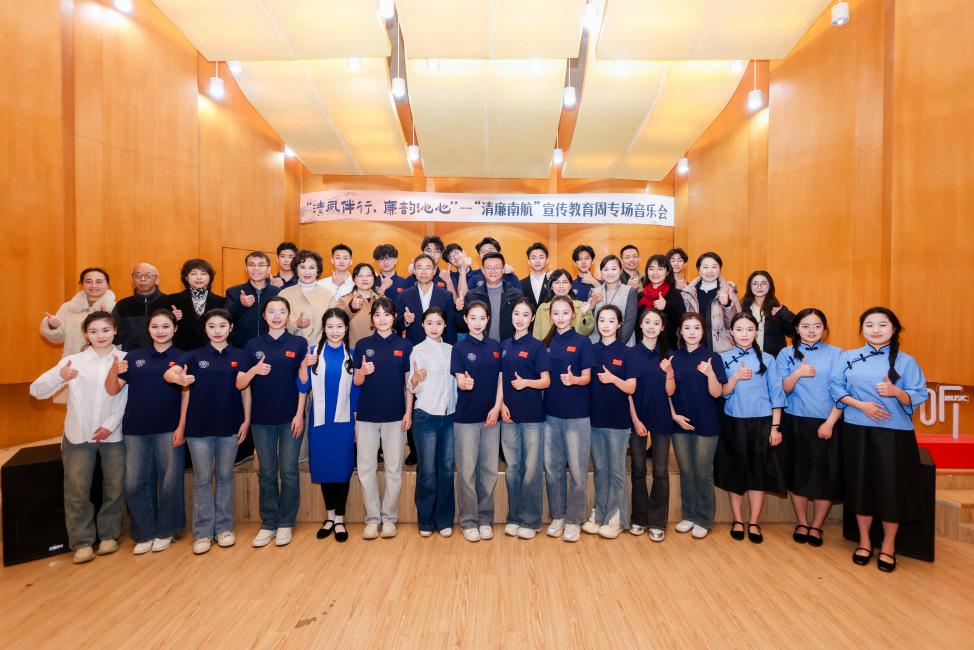 中午,一场以“倡廉”为主题的“午间音悦听”在将军路校区音乐厅举办。音乐会现场,黄色影片 音乐系师生带来精彩的表演:小合唱《唱支山歌给党听》与独唱《公仆赞》,以悠扬的旋律、深情的歌声表达着对党的忠诚与热爱,对人民公仆的殷切歌颂;歌曲表演《绣红旗》、朗诵《廉洁颂》描摹了光明正义、廉洁自律的动人篇章;最后,四重唱《在道德星空下前行》与合唱《星辰大海》引领师生在道德与清廉的星空中探索前行,以高尚的品德照亮人生的星辰大海。