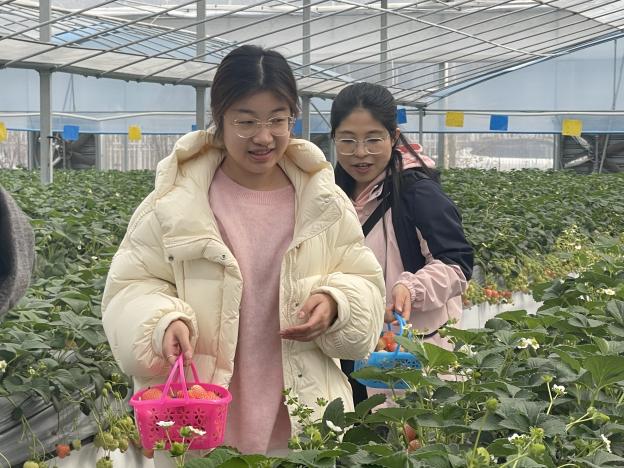 移步草莓园,老师们拿上采摘篮,不仅享受到了劳动的乐趣,还体会到了现代农业科技带来的便利和成果。