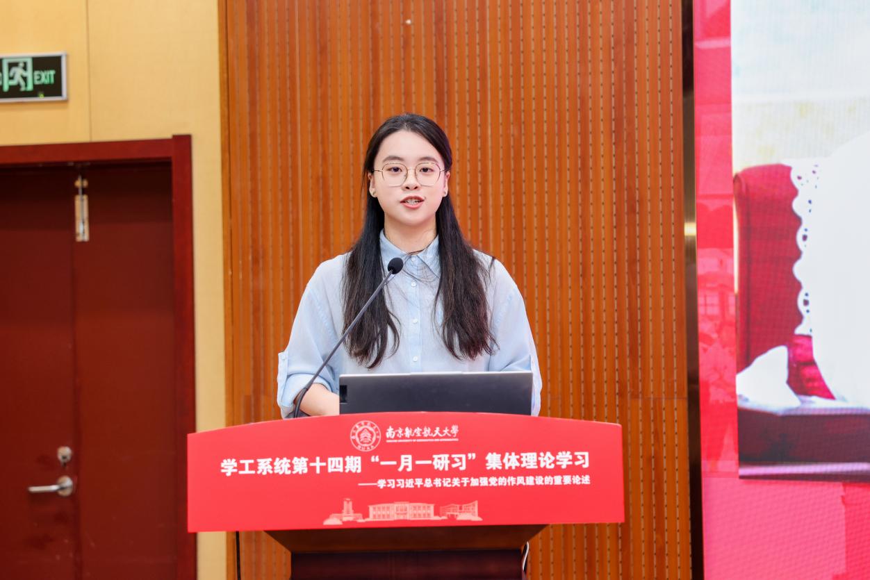 会议最后,刘宇雷分享了学习习近平总书记关于加强党的作风建设的重要论述的思考和体会。他指出,作为学校学生日常思想政治教育和管理工作的组织者、实施者、指导者,学生工作人员理应以作风建设新成效推动保持党的先进性和纯洁性,进一步筑牢守好思想政治阵地和意识形态阵地,营造风清气正、向善向上的育人生态,努力实现培根铸魂育新人的工作目标。他从三个方面提出具体要求:一是提高政治站位,深化思想认识,切实增强开展学习教育的政治自觉;二是对标目标要求,把握工作安排,高质量落实学查改各项重点任务;三是坚持问题导向,把握方法规律,深化作风建设务求工作取得实效。他强调,加强党性修养要一以贯之,不断在自我修炼、自我约束、自我改造中检视、砥砺和提高,保持永不变色的党员本色和始终如一的育人初心。