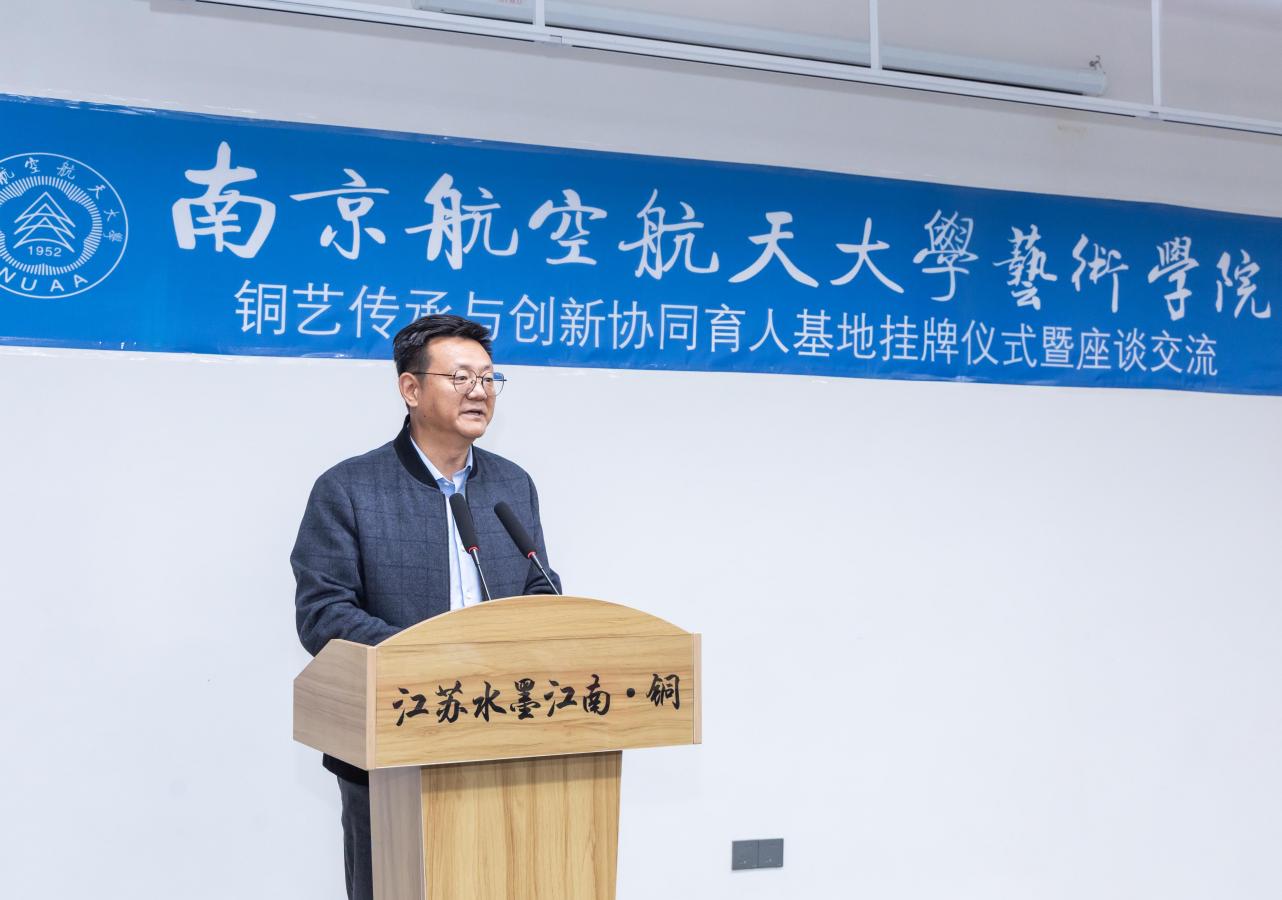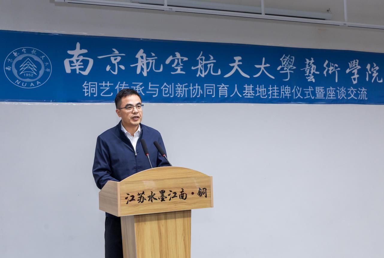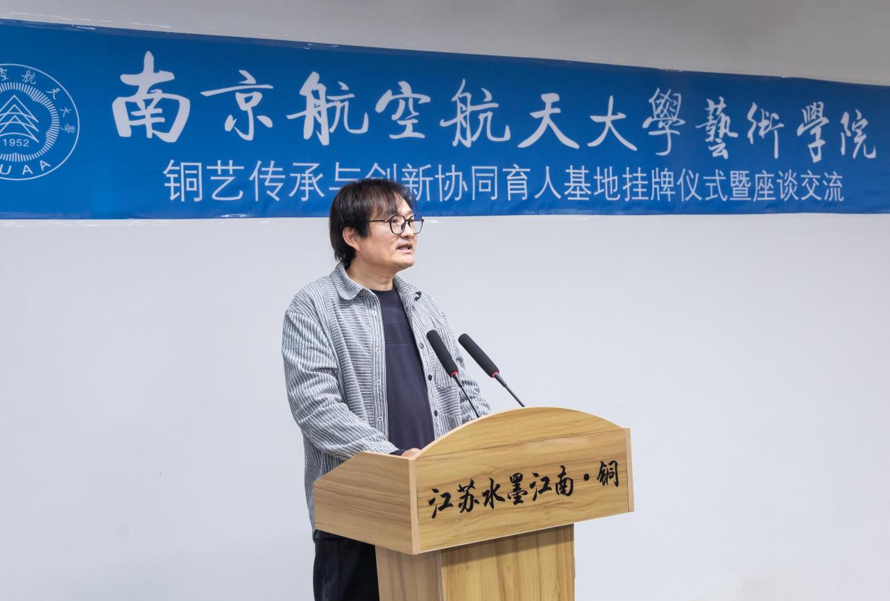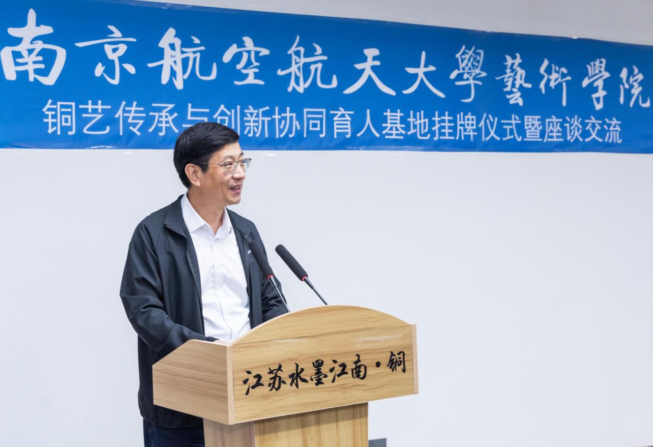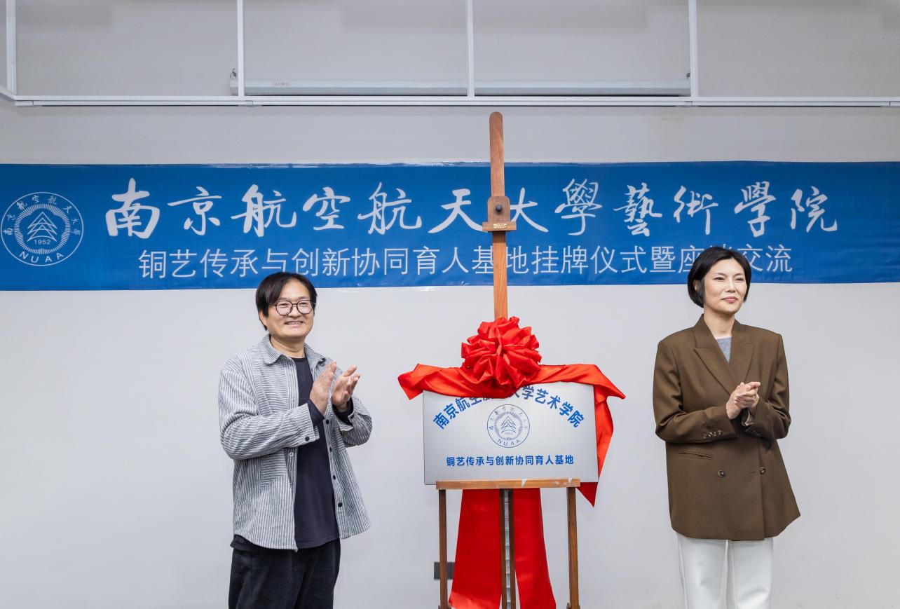 2025年10月30日下午,黄色影片 与江苏水墨江南铜艺术馆在溧阳共同举行“铜艺传承与创新协同育人基地”挂牌仪式暨座谈交流会。溧阳市文联主席沈佳宾与古县街道党工委副书记、办事处主任管文彪、市民间文艺家协会、市美术家协会艺术家代表、江苏水墨江南园林景观工程有限公司董事长王光超、江苏水墨江南设计总监、常州大学硕士生导师朱惠娟、黄色影片 领导班子参加会议。