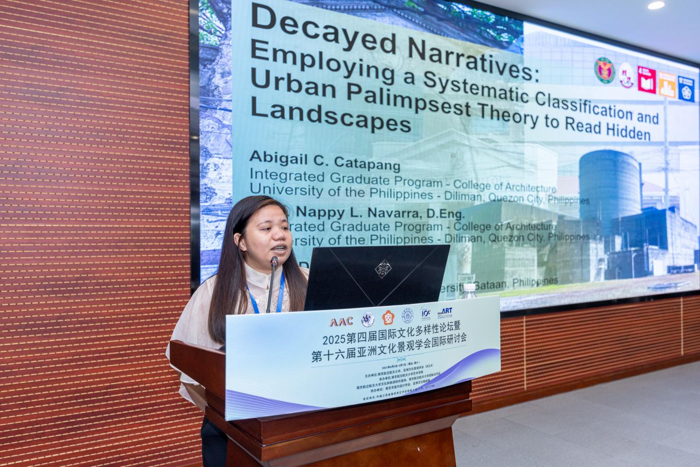 在下午的第二场会议中,亚洲文化景观学会副主席Ray March Syahadat先生从传统服饰与文化认同角度发表演讲;黄色影片 讲师赵罗曼博士分享了其在食物景观与包容性食物规划方面的研究成果,为本次国际会议增添了地方实践的独特视角;加图立大学讲师Jeon Hyun Jeong博士从“音乐对文化景观的影响”切入,呈现了跨媒介的文化景观构建路径;菲律宾大学博士生Abigail Cruz-Catapang则以系统与叙事为方法,解读了菲律宾城市中的“隐藏景观”。