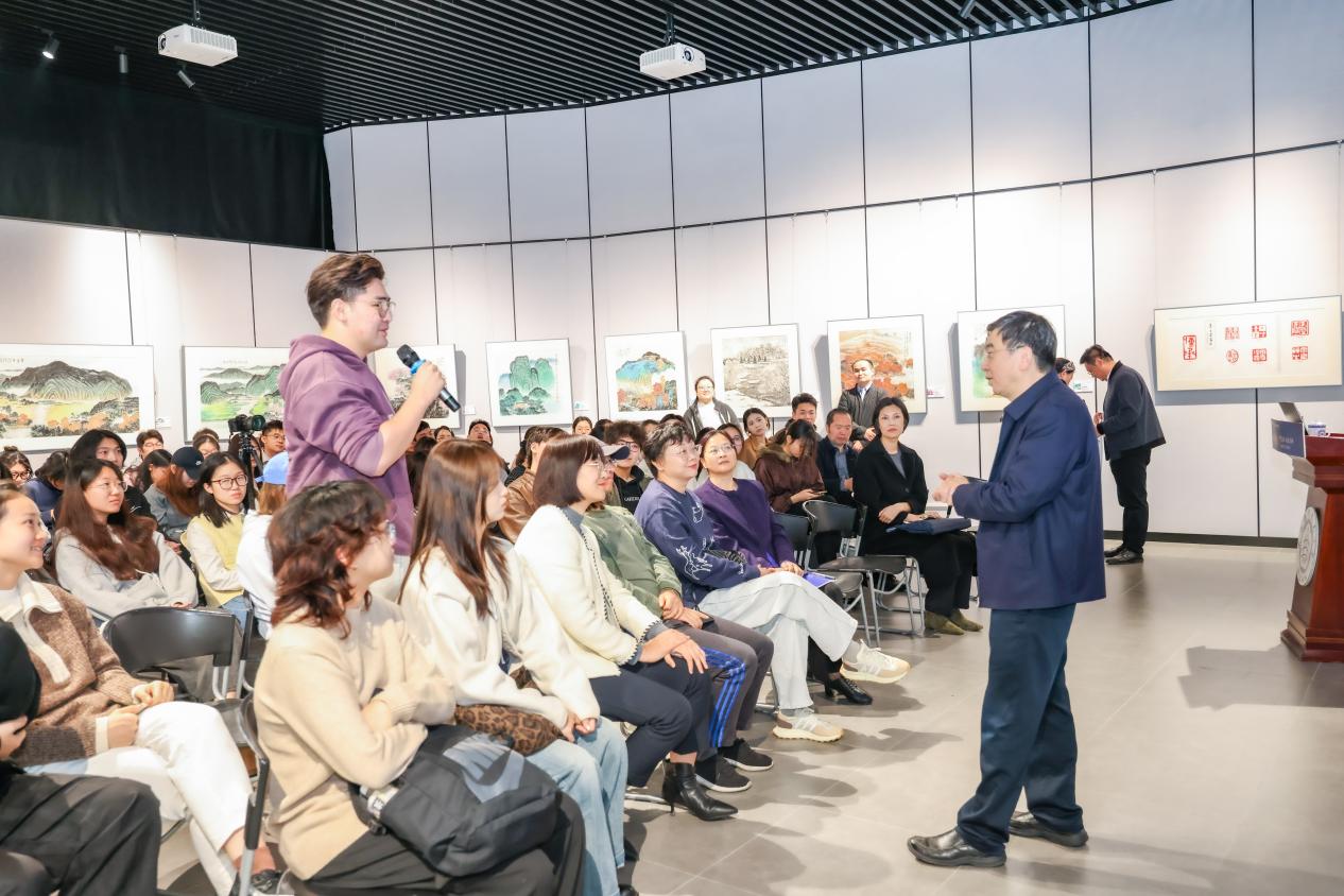在互动环节,学生们踊跃提问,问题聚焦人工智能时代的艺术主体性、艺工融合的深度合作模式等前沿话题。施大宁教授逐一给予了精辟解答,现场交流热烈。
