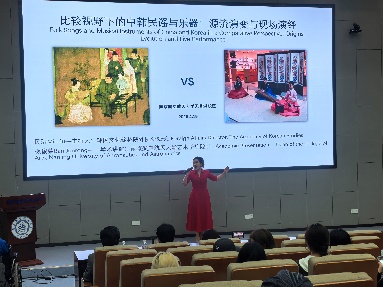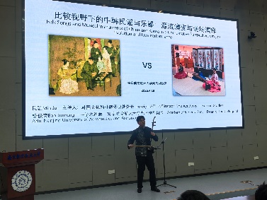 为加强比较视野下的视听感受,本次讲座音乐会专门特邀缪佳幸博士、刘东升同学和李知羽同学参与了民歌和民族器乐表演。缪佳幸的两首民歌演唱生动悠扬,刘东升的二胡特色鲜明,李知羽的竹笛曲调悠扬。他们既有对传统经典名作的呈现,也有对流行歌曲的创造性演绎。当二胡碰上《青花瓷》,碰撞出的火花足够点燃每个人心中的民族自豪感。