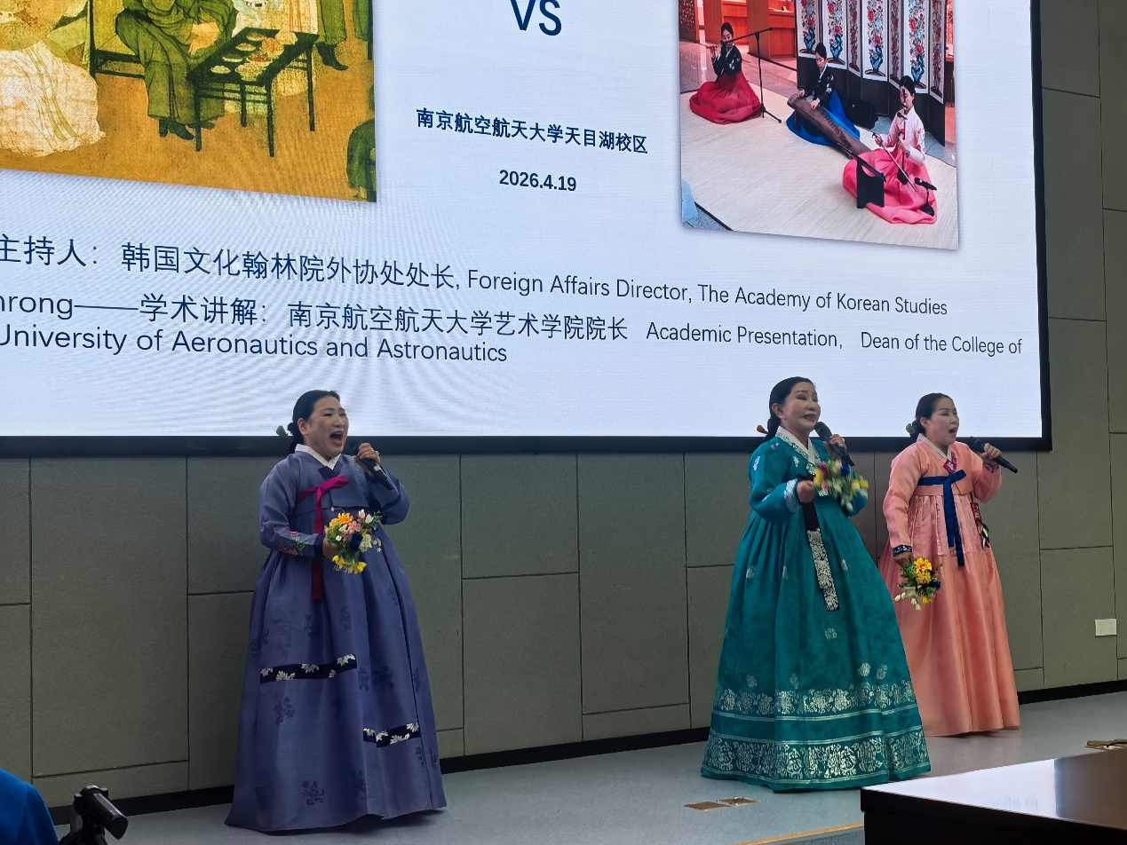 汉魏六朝以来,中华古乐持续向外辐射,深远影响周边诸国。高丽半岛流传的玄琴(仿自中国七弦琴)、钟鼓、丝竹等传统乐器,便是古代中韩音乐文化交流最鲜活的历史佐证。在这次讲座音乐会上,来自韩国国家级非遗传承人尹素里(Yoon Sori)大师及其团队代表着韩国传统声乐艺术的巅峰水准,被公认为韩国民间歌谣本色的正宗传承者,他们为我校师生奉献了格调高雅的京畿地区民谣。